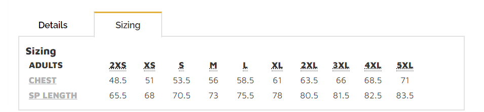 Sizing Details