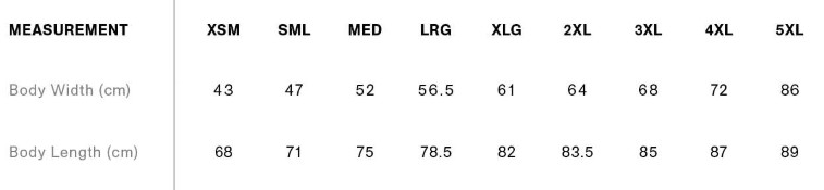 • Neck ribbing, side seamed, shoulder to shoulder tape, double needle hems, preshrunk to minimise shrinkage