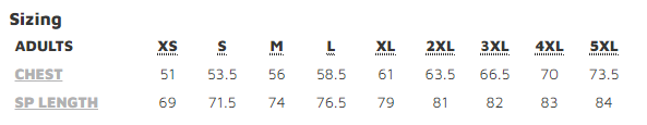 SP Length 69 71.5 74 76.5 79 81 82 83 84